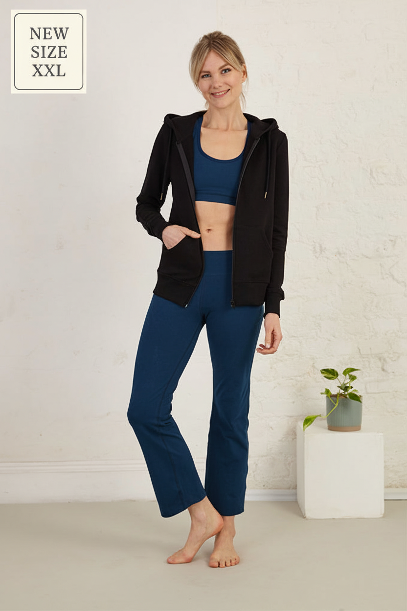 This zip-up hoodie features a full zip, flattering front darts, a drawstring hood and side pockets. Made from 100% GOTS certified organic cotton french terry.